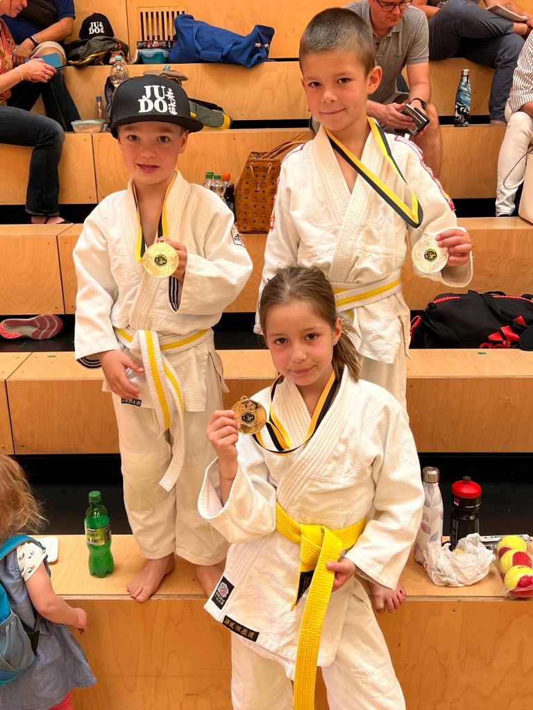 Anschließend gingen Merjem, Niklas und Noah in der U12 an den Start. Niklas gewann souverän alle seine Kämpfe in gesamt unter 3 Minuten und durfte ebenso eine Goldmedaille sein Eigen nennen. Merjem schlug sich tapfer als leichteste Kämpferin in ihrer Gruppe und wurde dadurch mit Bronze belohnt. Leider nicht ganz gereicht hat es für Noah an diesem Tag – das nächste stehen wir dann auch wieder auf dem Podest!