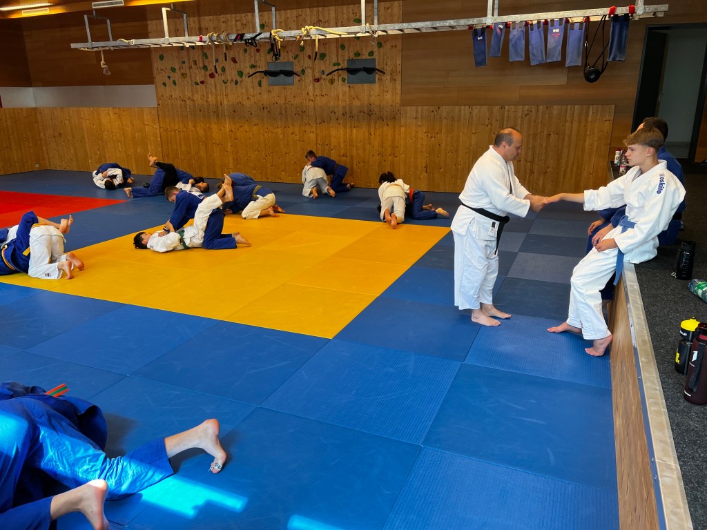 Mit dabei auch einige Besucher als Deutschland, unter anderem vom Saarländischen Judobund, dem TSV Abensberg, dem Judoverein Nürtingen und dem TSV München-Großhadern. Im gut besuchten Dojo fanden sich zu jeder Einheit 20-30 Judokas ein. Gemeinsam absolvierte man 3 schweißtreibende Einheiten bei sommerlichen Temperaturen in und außerhalb der Halle.
